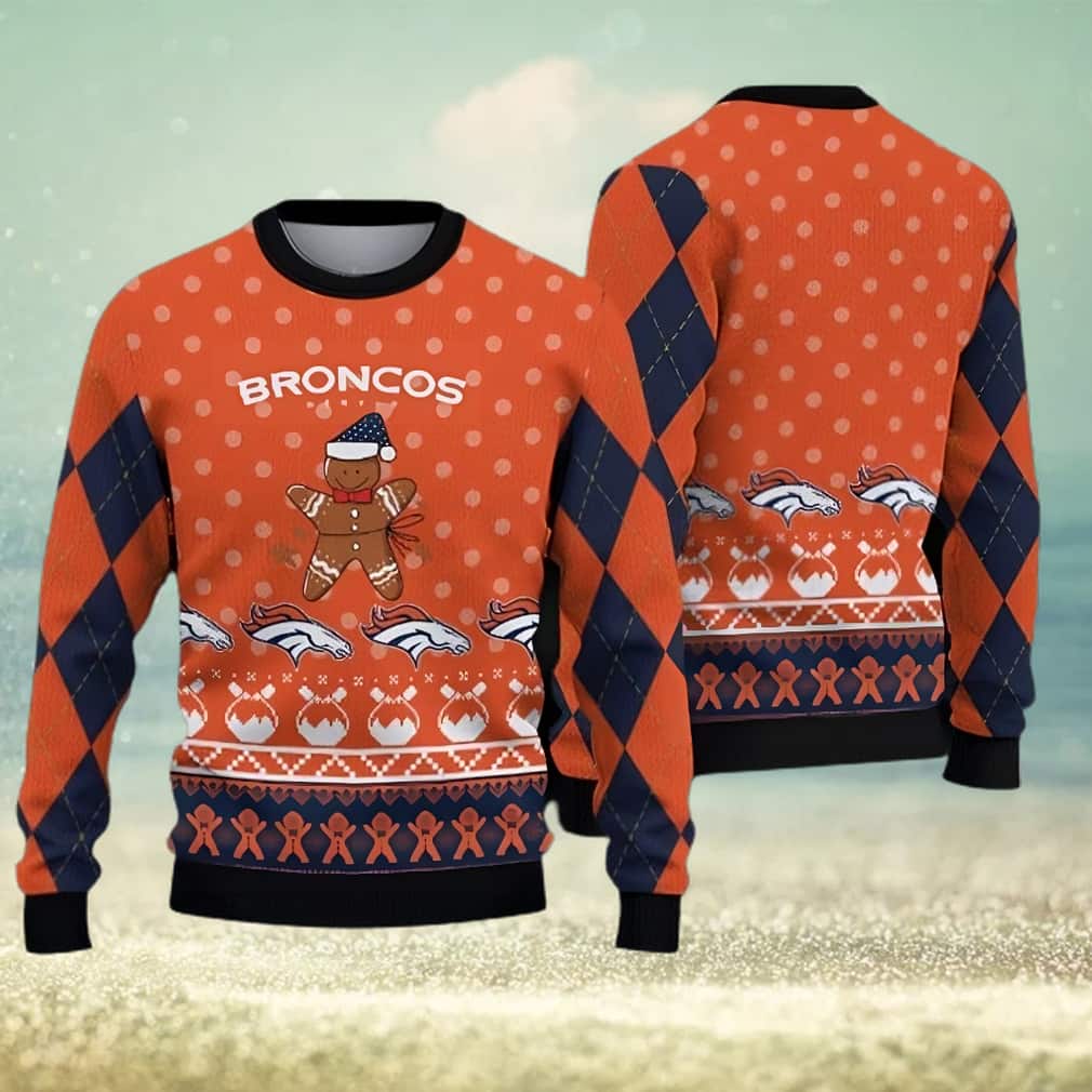 - NFL Denver Broncos Gingerbread Man Ugly Christmas Sweater Snowflake Pattern